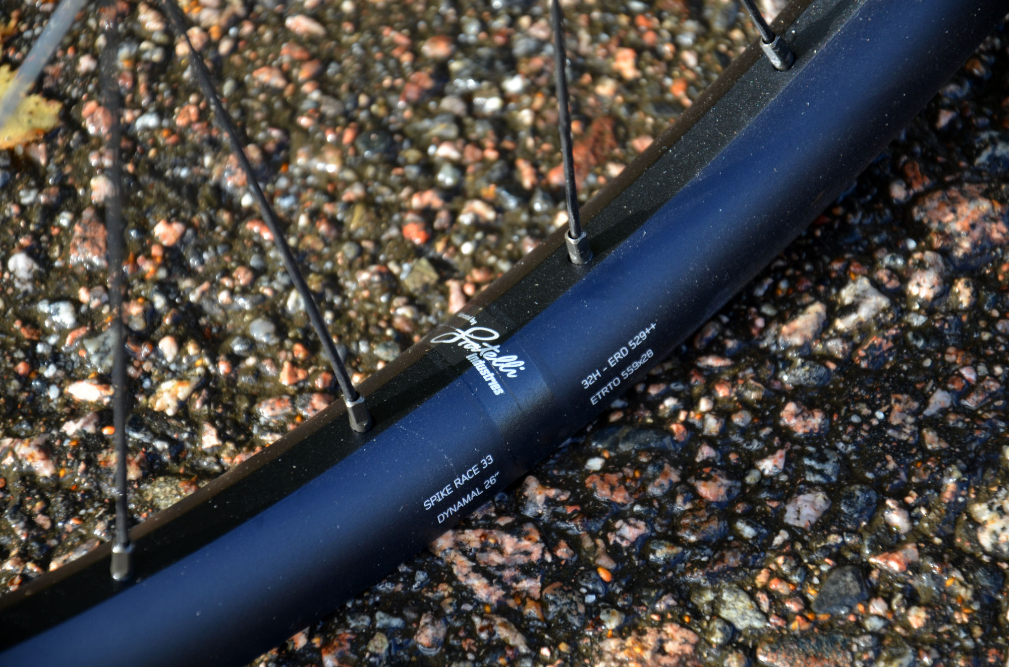 The wheels are built around Spank Industries Spike Race 33 26″ rims with a 28mm inner width.