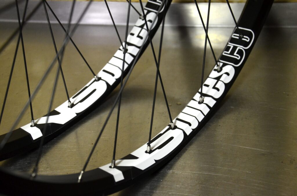 Race spokes are mated with with black-coloured Sapim Polyax Double Square nipples. Brass nipples are used exclusively in builds because of their reliability, low to zero maintenance needs, corrosion resistance and strength. Reliability, and function are further enhanced by using the Secure-Lock version of the said nipples, or by adding a mild adhesive compound with traditional nipples.
